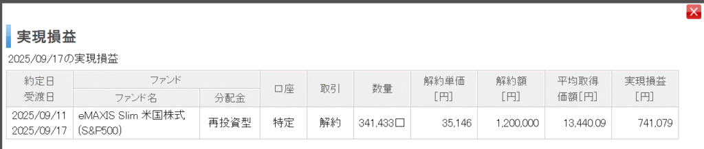 そして時を同じくして、eMaxisSlim米国株式(S&P500)。こちらも、解約単価35,146円ですが、今日現在の基準価額は37,032円。2,000円弱も値上がりしています。