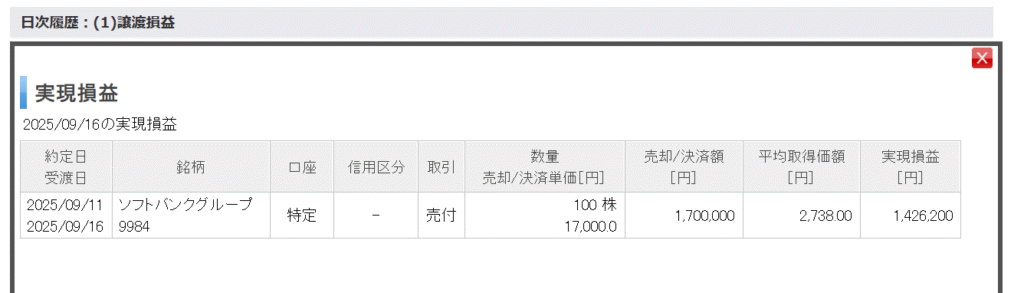 と言いたいところでした。でも、実は、9月の半ばにポートフォリオの整理を思い立ち、ソフトバンクグループの株を17,000円で100株、売却してしまいました。涙
