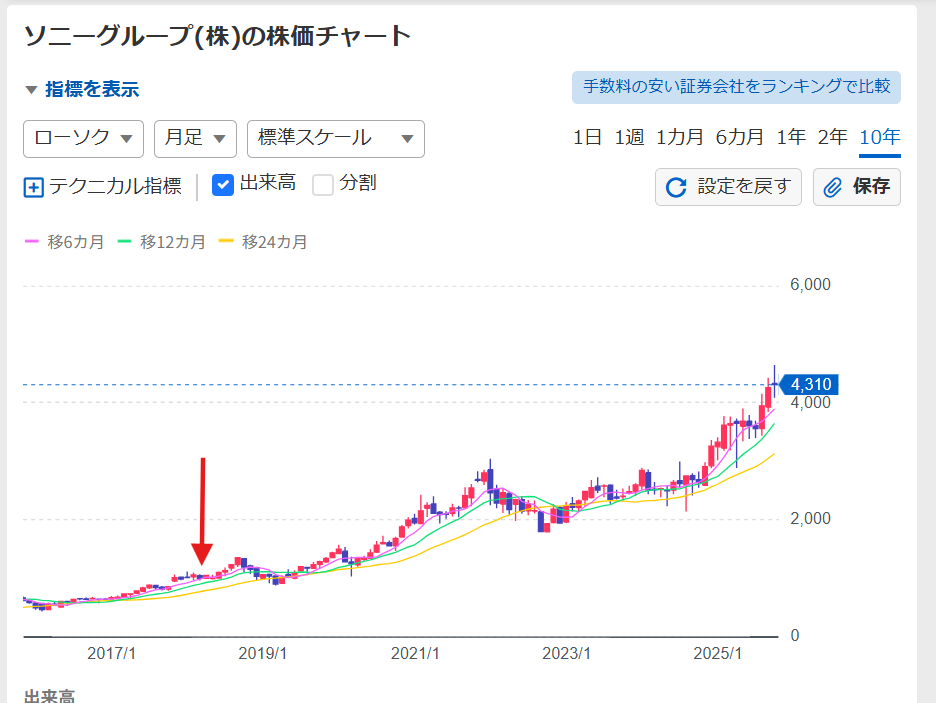 第二位:ソニー株 2018年に売却