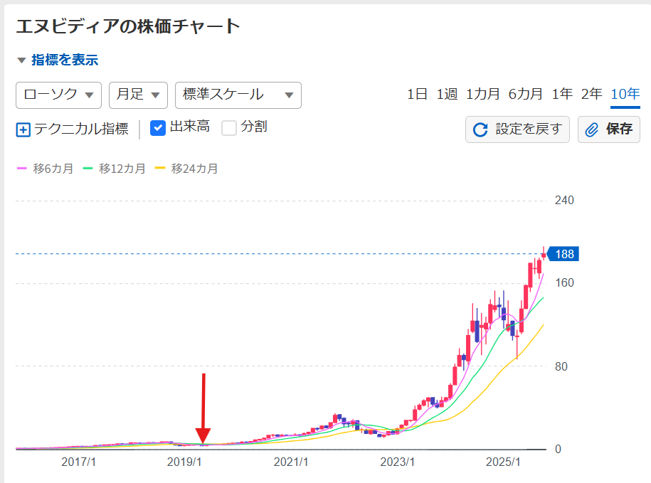 第一位:エヌビディア。2018か2019年に50株購入したのですが、2019年に損出しのためにいったん売却しました。
